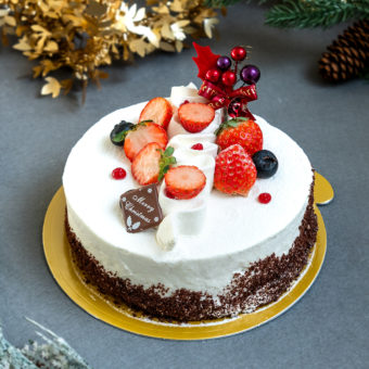 期間限定チョコレートのみのクラシカルなショートケーキに苺をさらにトッピングした贅沢なケーキ